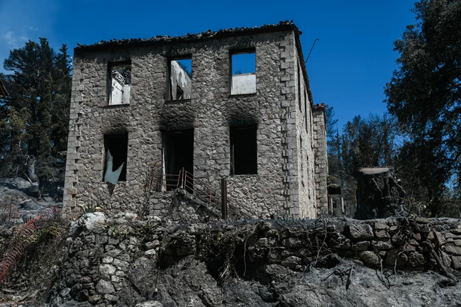 Εκατοντάδες στρέμματα αποτεφρωμένης δασικής έκτασης και μεγάλες ζημιές σε κτίρια των πρώην Βασιλικών Κτημάτων στο Τατόι, προκάλεσε η φωτιά στην Αττική